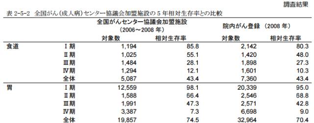 日本部分癌癥治療醫(yī)院胃癌治療后5年生存率