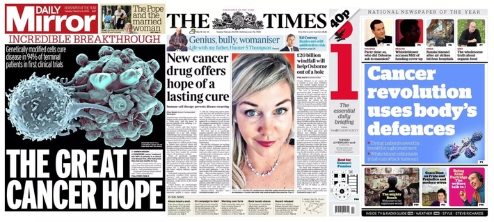 近日英國媒體的頭條都在討論這么一件事:那就是科學(xué)家發(fā)明了新型的癌癥治療方法,就是利用人體自身的免疫細(xì)胞去攻擊擴(kuò)散癌細(xì)胞。