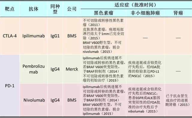 表1.FDA批準(zhǔn)用于抗腫瘤治療的免疫點(diǎn)抑制劑