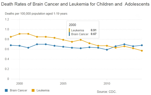 這一數(shù)據(jù)由美國(guó)疾病預(yù)防控制中心(CDC)公布,數(shù)據(jù)揭示:癌癥是全球兒童第四大死亡原因,2014年每10個(gè)死亡兒童約有一人是死于癌癥,在美國(guó)其中的四分之一為腦癌,大約為534;排在第二的是白血病,約為445例。