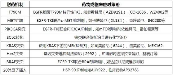 例如,繼發(fā)突變是T790M突變的話,則使用奧希替尼(AZD9291),如果是其他突變導致耐藥則需用對應的靶向藥物,如靶向ALK融合的克唑替尼、色瑞替尼或者參加相應的臨床試驗。