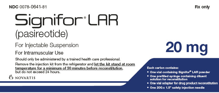 Signifor LAR作為肌內(nèi)注射的注射懸液提供。介紹的初始劑量為40mg,通過肌內(nèi)注射每4周一次(每28天)一次。對于劑量修改,請參閱藥物標簽。