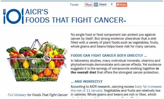 美國癌癥研究所(AICR)網(wǎng)站就一直在介紹抗癌食物,且根據(jù)臨床研究數(shù)據(jù)一直在補充更新:
