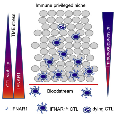 “我們發(fā)現(xiàn)一些刺激能去除細(xì)胞表面的IFNAR1,這與腫瘤微環(huán)境中發(fā)生的情況相似,”Fuchs博士說(shuō)。“于是我們好奇,腫瘤中是否也存在受體的損失?!蓖瑫r(shí),研究人員發(fā)現(xiàn)在腫瘤微環(huán)境中免疫相關(guān)基因的表達(dá)下降,產(chǎn)生了一個(gè)免疫豁免的區(qū)域。