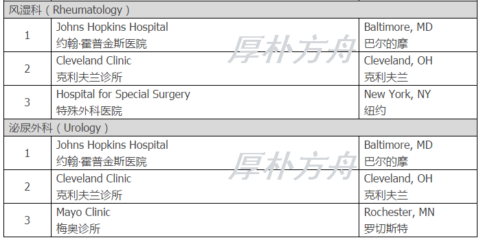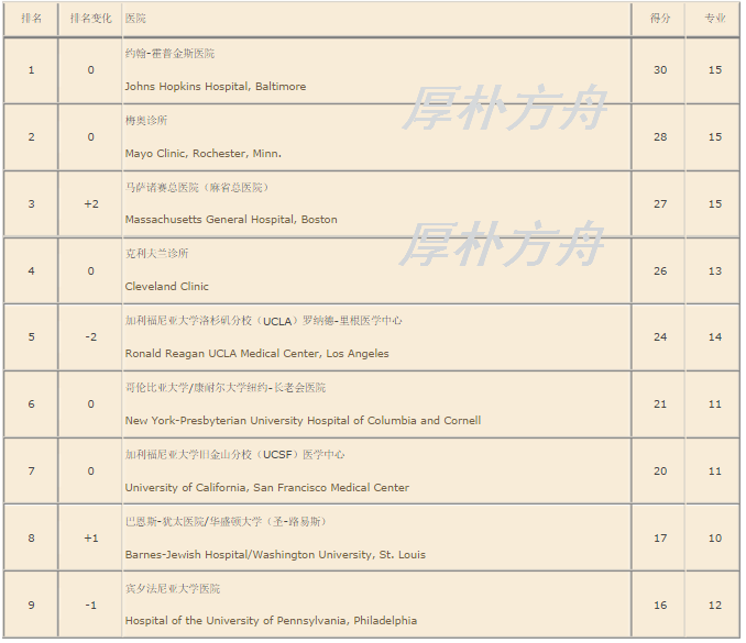 下圖為2010年~2011年《美國新聞與世界報(bào)道》發(fā)布的權(quán)威??漆t(yī)院排行