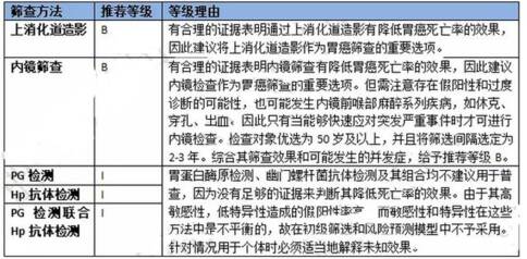 其實具體的篩查方法大同小異,中日胃癌篩查指南種主要包括了下列篩查方法:上消化道造影、內鏡篩查、血清學檢查(包括血清胃蛋白酶原(PG)檢測、幽門螺桿菌(Hp)抗體檢測以及PG檢測聯合Hp抗體檢測)。但是介紹等級和程序上卻大有不同。